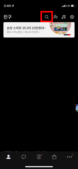 먼저 카카오톡을 켜신 후, 맨 위에 돋보기 버튼을 눌러주세요.