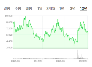 네이버에 주식 종목을 검색하고 그래프를 10년 단위로 변경해보면 대부분 우상향 한다. 그런데 대부분이지 모두는 아니다. 밑에 A종목의 10년 단위 주가 그래프를 보면 엄청 요동친다. 그리고 우상향 하지도 않는다. 심지어 2014년과 비교해서는 훨씬 낮은 가격에 거래되고 있다. A종목을 10년 전에 구매하고 10년 동안 기다렸지만 오히려 수익은 -를 기록했을 것이다. 무조건적인 기다림이 장기투자를 의미하는 것은 아니다.