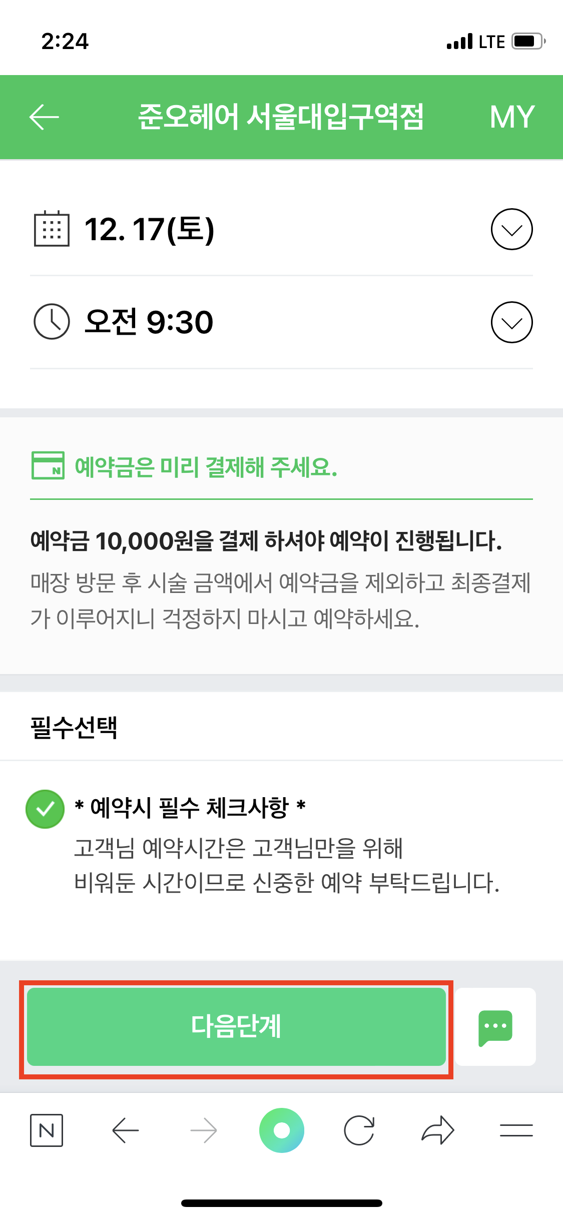마지막으로 디자이너분을 선택해서 [예약]을 눌러주신 후, 결제까지 하시면