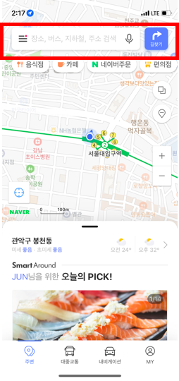 해당 지도 어플은 길을 찾는 기능 외에도 다양한 기능들이 존재하죠.
