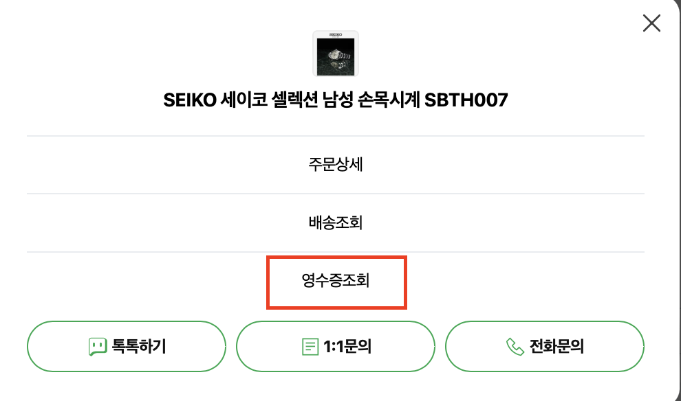 - 영수증이 필요한 주문 [점 세개] 클릭
