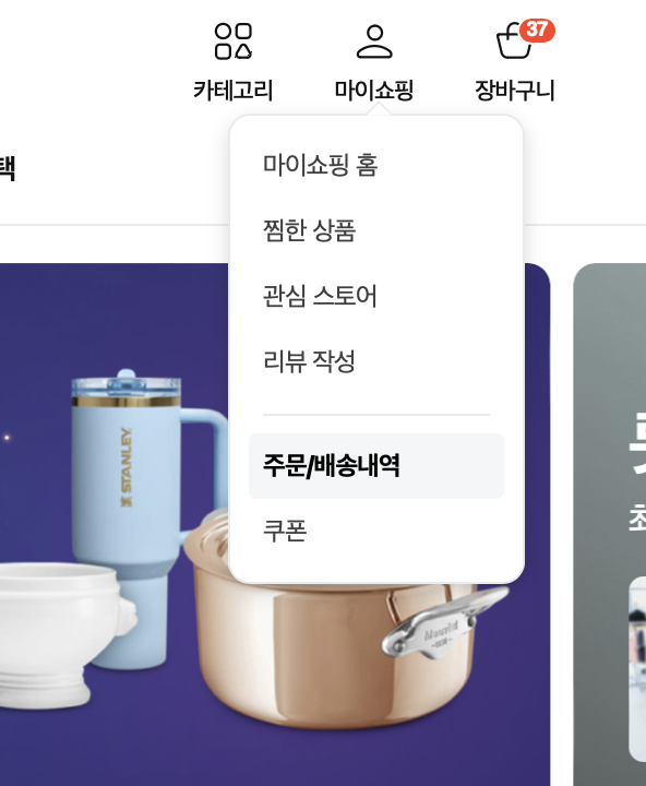 - 상단 [마이쇼핑] 클릭 → 주문/배송내역 진입