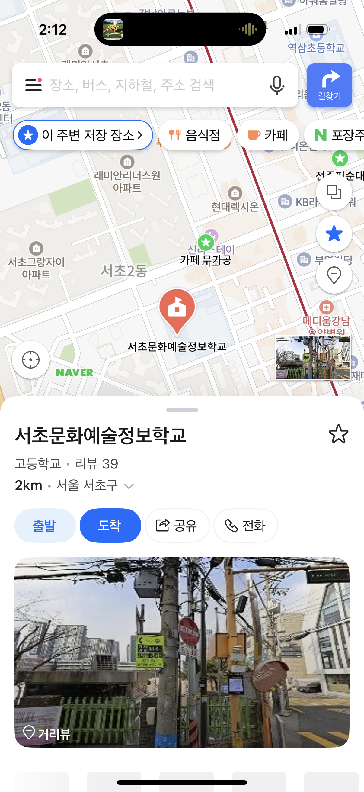 - 검색창에 원하는 장소 입력 후 결과 클릭
