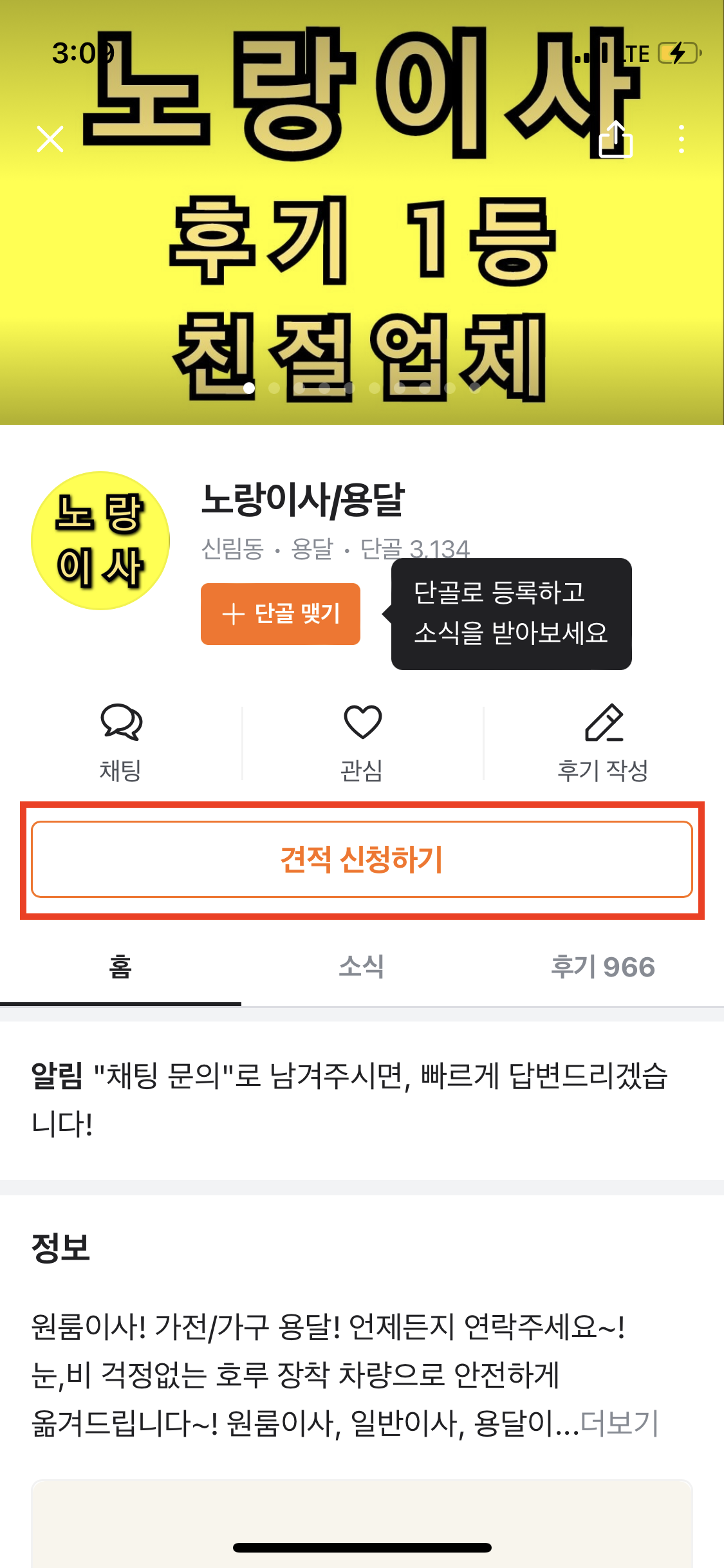 그런 다음 이사를 신청할 업체를 선택해 주신 후, [견적 신청하기]를 눌러주세요.