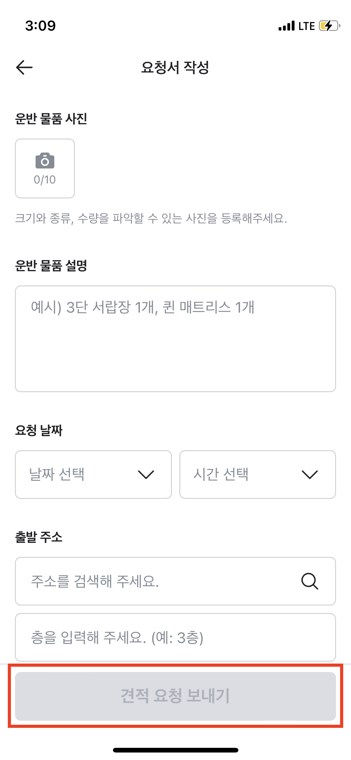 보낼 물품에 대한 내용을 작성해주시고 [견적 요청 보내기]를 누르면
