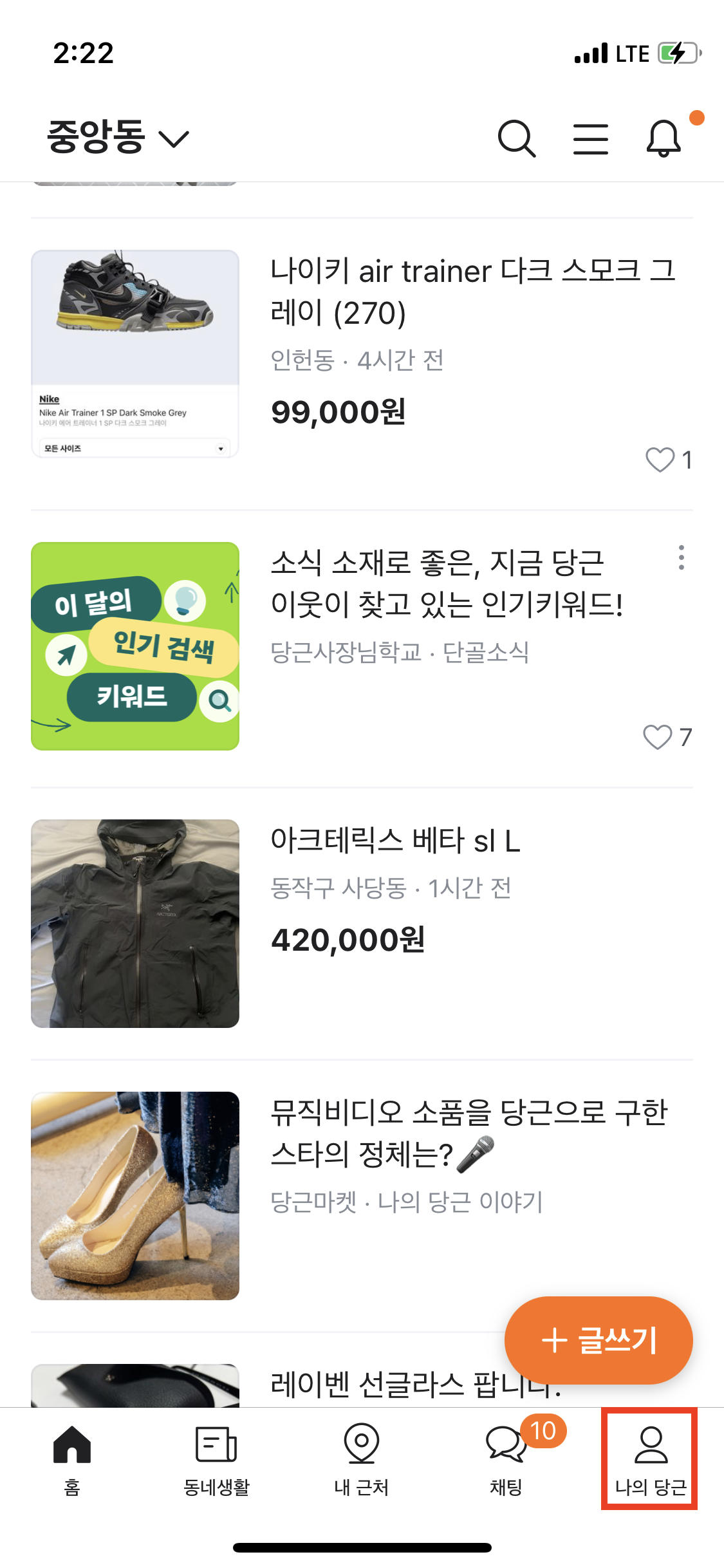 먼저 당근마켓을 켜신 후, [나의 당근]을 눌러주세요.