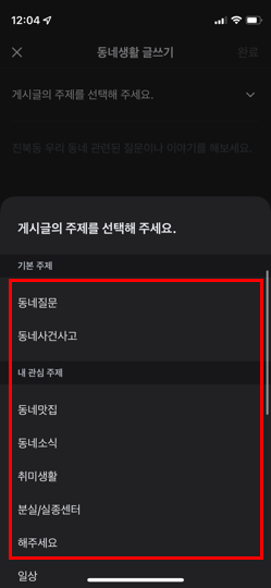 마땅한 카테고리가 없으시면 동네질문을 선택해주시면 됩니다.