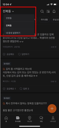동네에 대한 궁금증이 있으면 물어보기도 하고 답변도 할 수 있는
