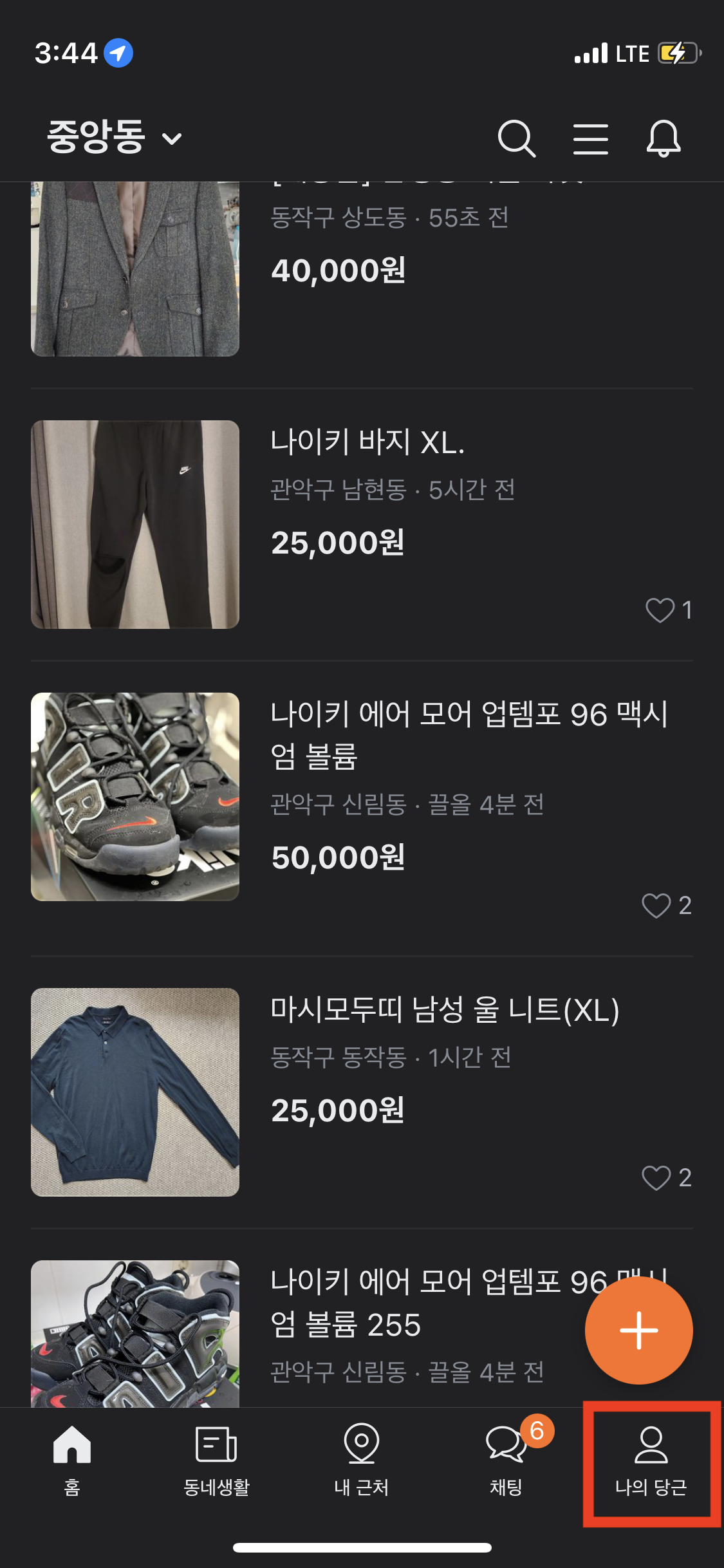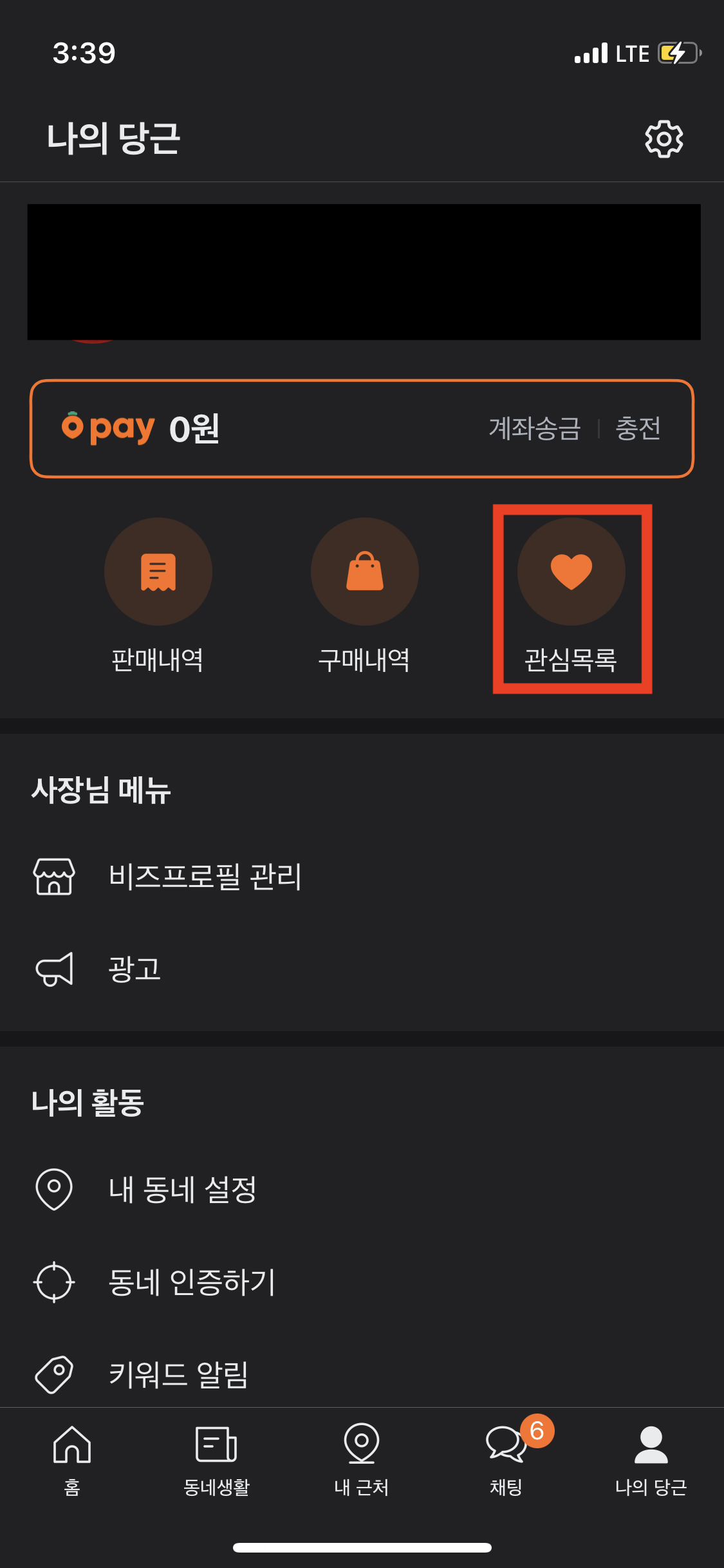 그러면 물품 관심목록 뿐만 아니라 동네생활에 써진 글도 목록에 저장이 됩니다.