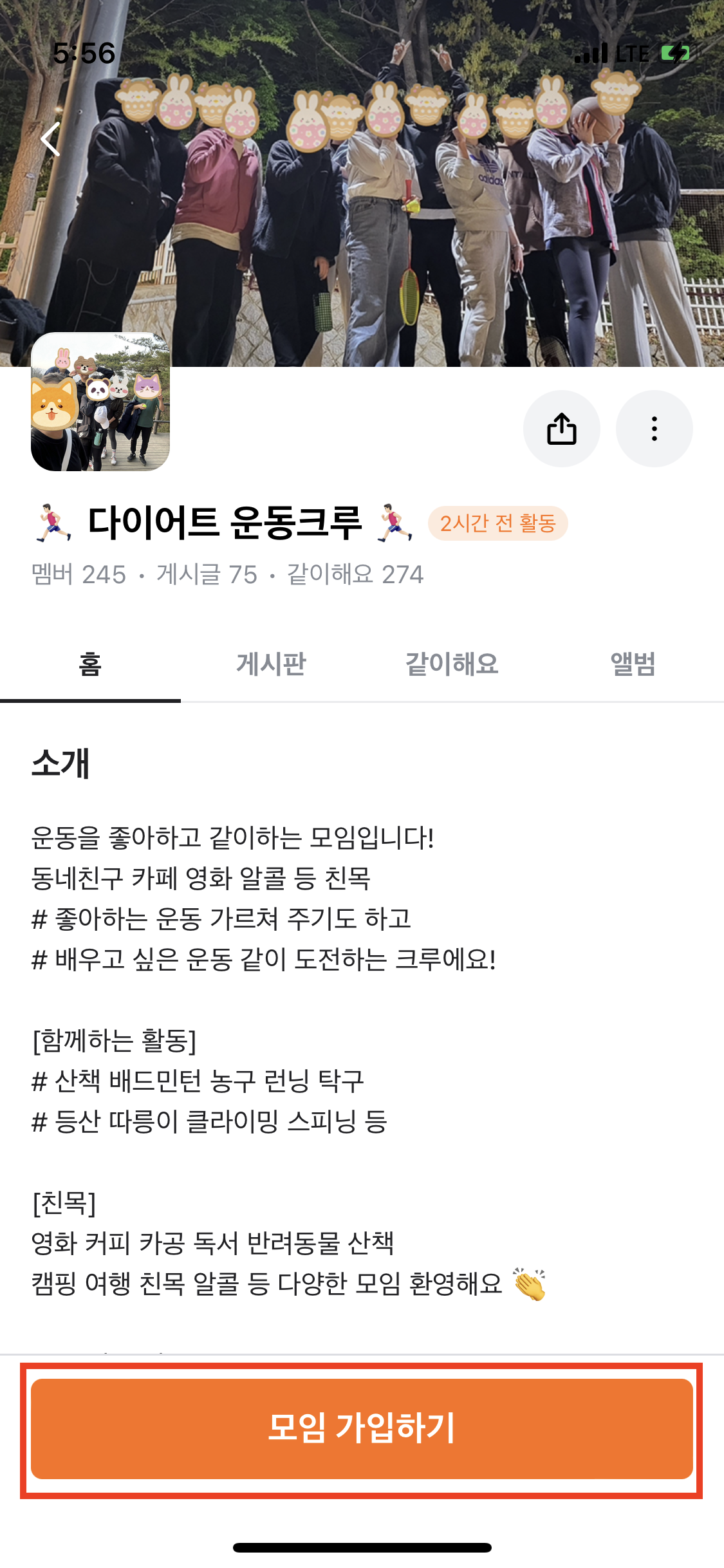 그러면 2번째 사진처럼 모임에 대한 소개글이 나오고 가입을 원하시면