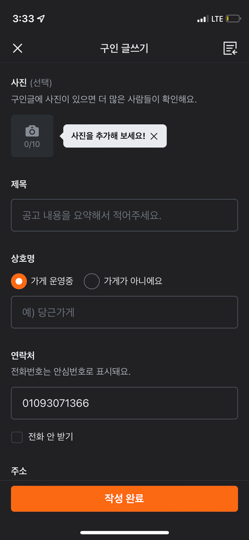 3단계 당근마켓 알바 구인 등록하는 방법