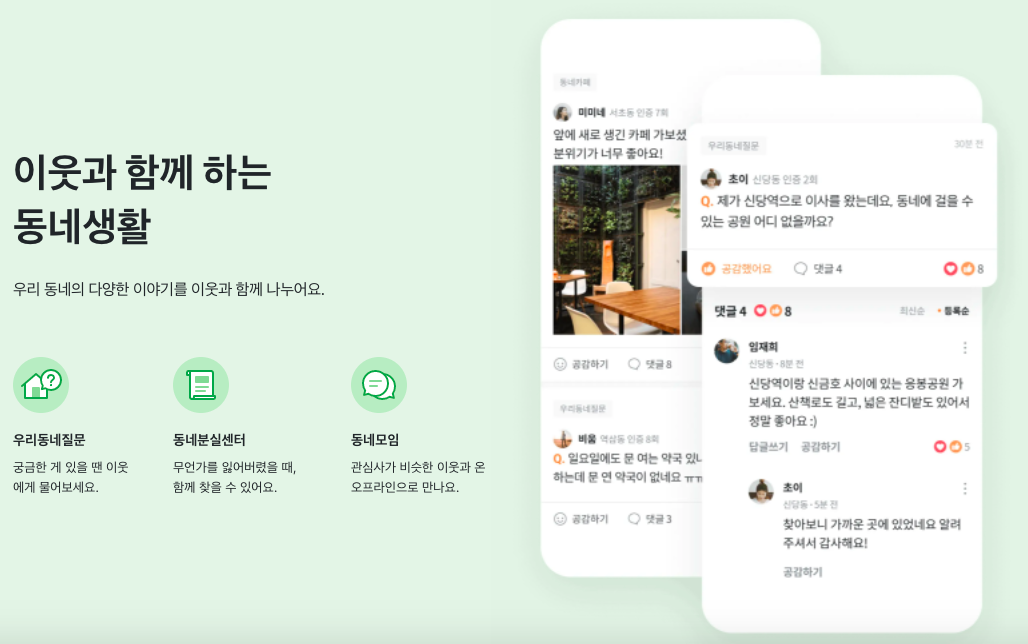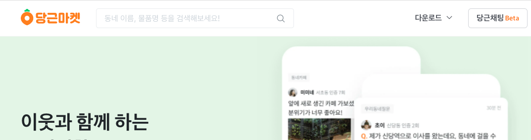 중고 거래부터 동네 정보까지, 이웃과 함께해요. 가깝고 따뜻한 당신의 근처를 만들어요.