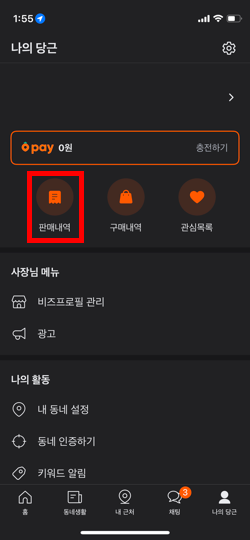 나의당근에서는 [판매내역]을 클릭해주세요.