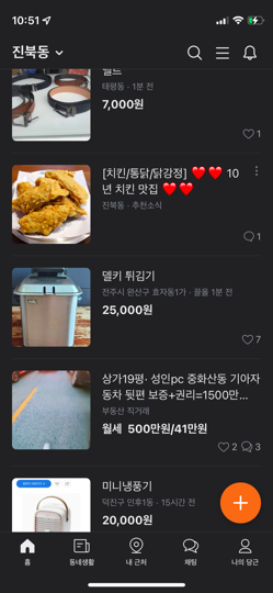당근마켓을 켜시면 다양한 물품이 올라오는데 관심 있는 상품을 클릭해서 들어가 주세요.