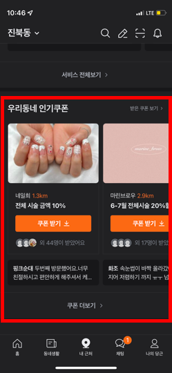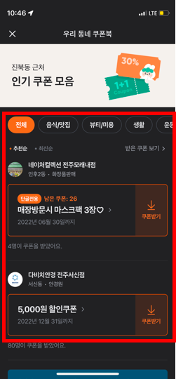 그러면 [우리동네 인기쿠폰] 카테고리가 있어요.