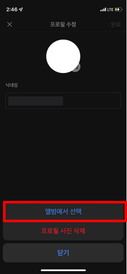 이후, [앨범에서 선택]을 눌러주시고 원하시는 사진으로 체크를 해주세요.