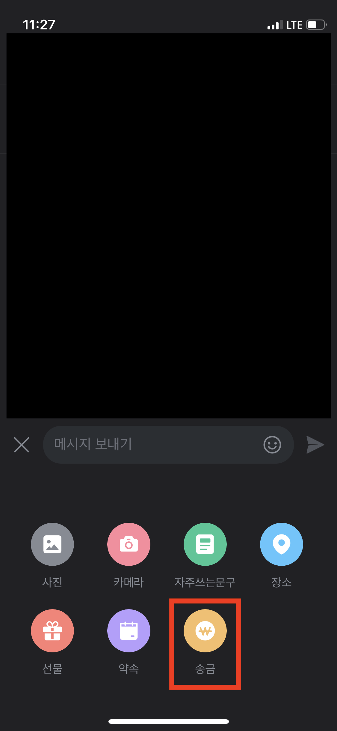 그러면 2번째 사진처럼 다양한 아이콘이 나오는데 [송금]을 눌러주신 후,