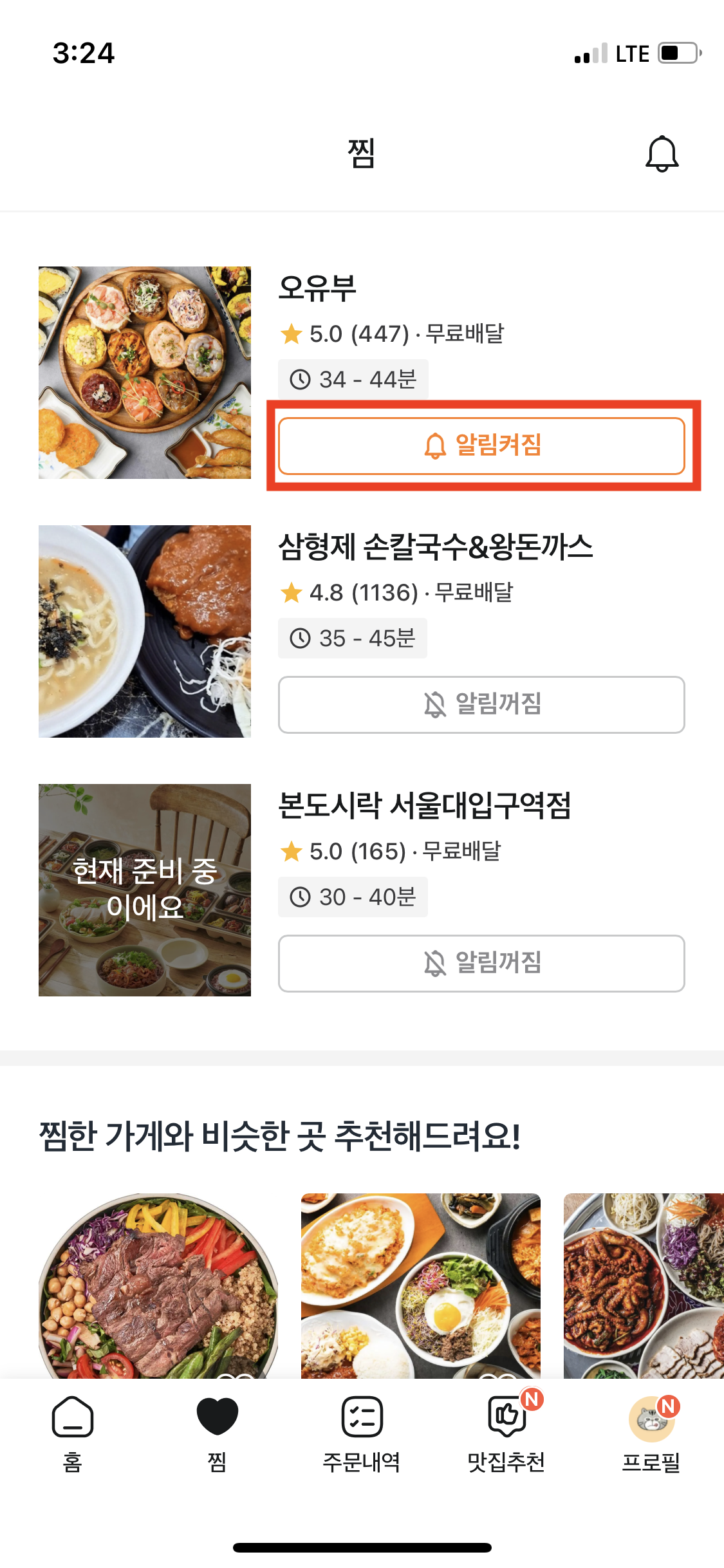 가게 찜을 하면 알림이 너무 많이 온다는 것인데요.