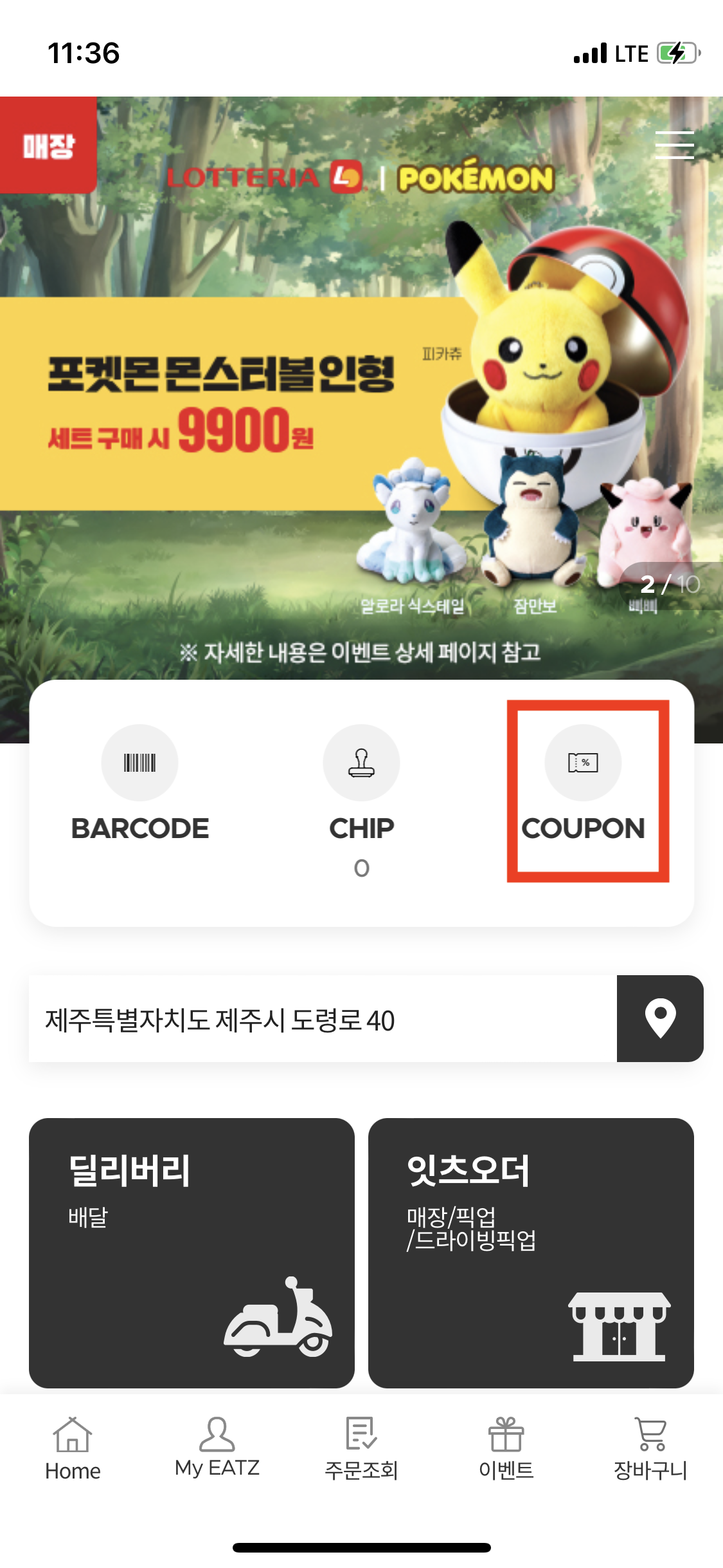 먼저 롯데이츠앱을 다운로드하신 후, 아래 첫 번째 사진처럼 [COUPON]을 클릭해주세요.