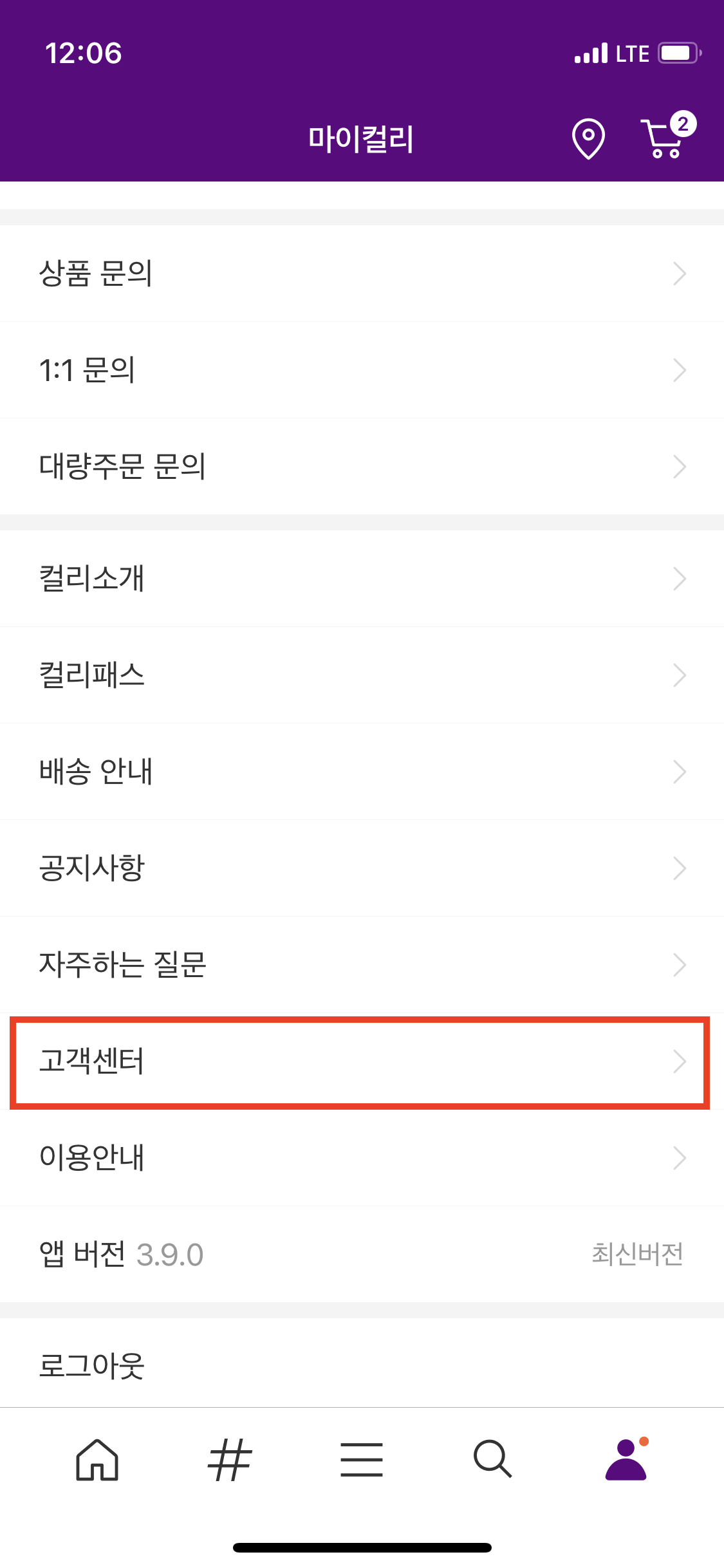 밑으로 쭉 내리면 [고객센터]가 나오는데 클릭해 주세요.