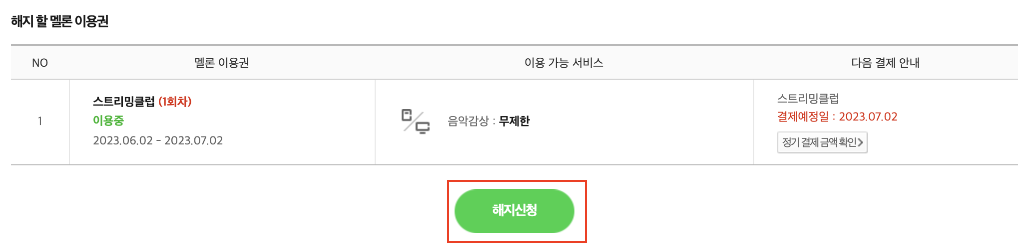 1단계 멜론 중도해지 하는 방법(금액환불)