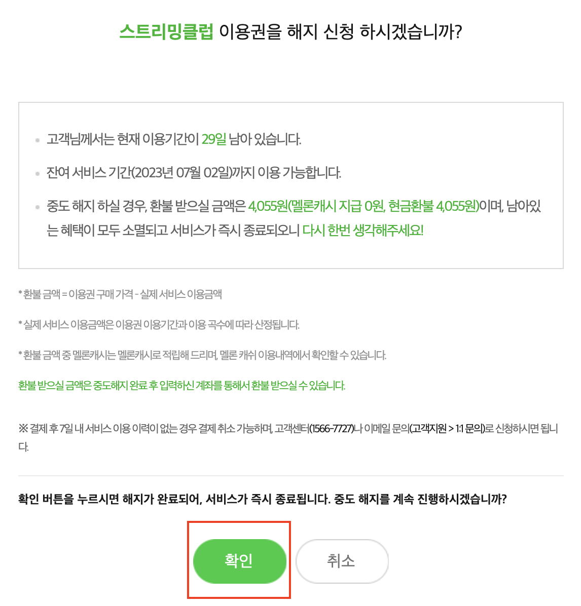 멜론 중도해지 하는 방법(금액환불) 끝!