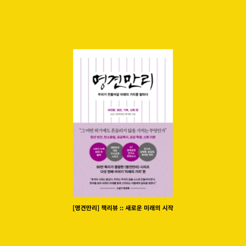 <명견만리> KBS의 유명한 다큐멘터리이자 4권의 책으로도 집필되었다. 코로나19 이후 대전환 시대 속에서 중요한 4가지 키워드를 통해 미래를 이야기하고 있다. 현재를 통찰하고 미래를 예견하기에는 좋으나 한 가지 키워드에 서로 다른 주장을 다뤘다면 조금 더 공정하지 않았을까 생각해본다.