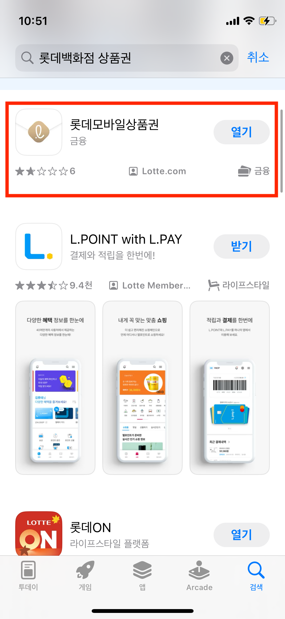 먼저 구글플레이스토어 / 앱스토어에서 롯데백화점 상품권이라고 검색해주세요.