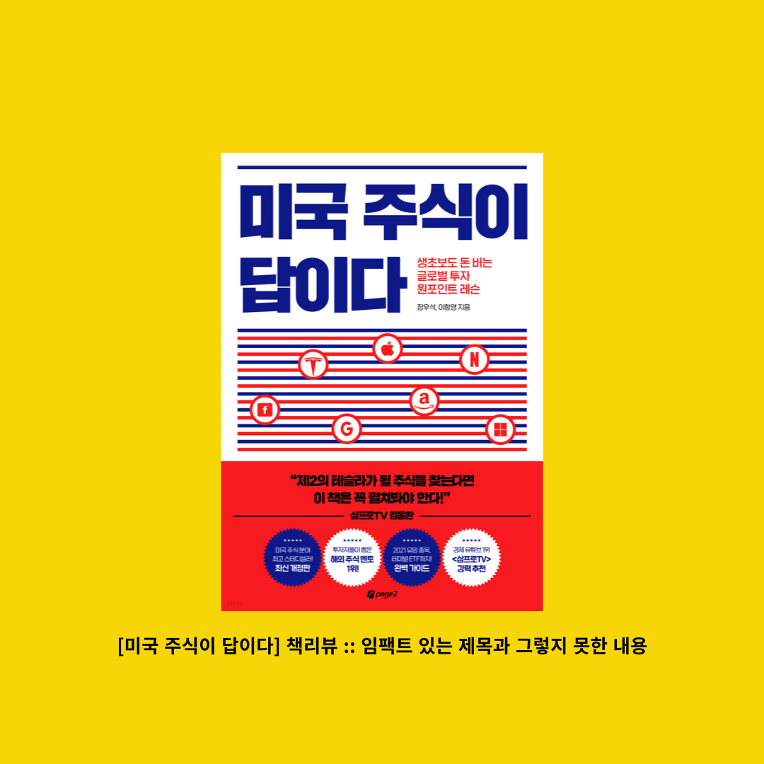 요즘에는 주식책이 많아지면서 제목부터 임팩트가 있어야 한다. 최근 투자분야 베스트셀러를 보면 <뉴욕주민의 진짜 미국식 투자>, <월급쟁이 부자로 은퇴하라> 등 구미를 당기는 문구로 우리를 유혹한다. 이번에 리뷰하는 책 역시 <미국 주식이 답이다>라면서 자신감이 넘친다. 하지만 이 책을 읽고 나면 정말 미국 주식이 답이 맞나?라는 의구심이 든다. 미국 주식 시장에 대한 의구심을 품는 것이 아닌, 저자가 미국 주식이 답이다라고 할 만큼 믿음을 주지 못한다.