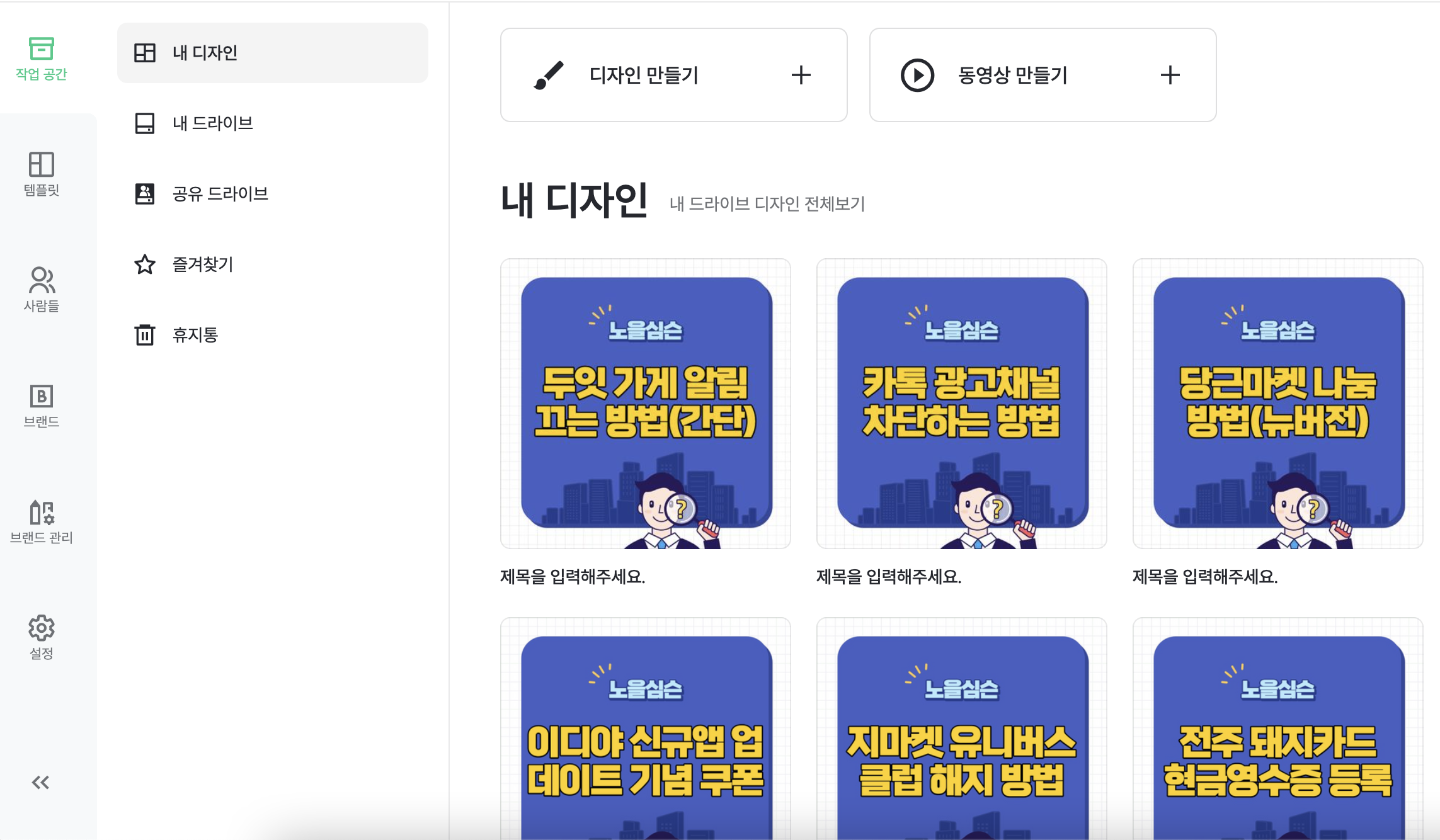 [작업 공간] - [내 디자인]을 눌러주세요.