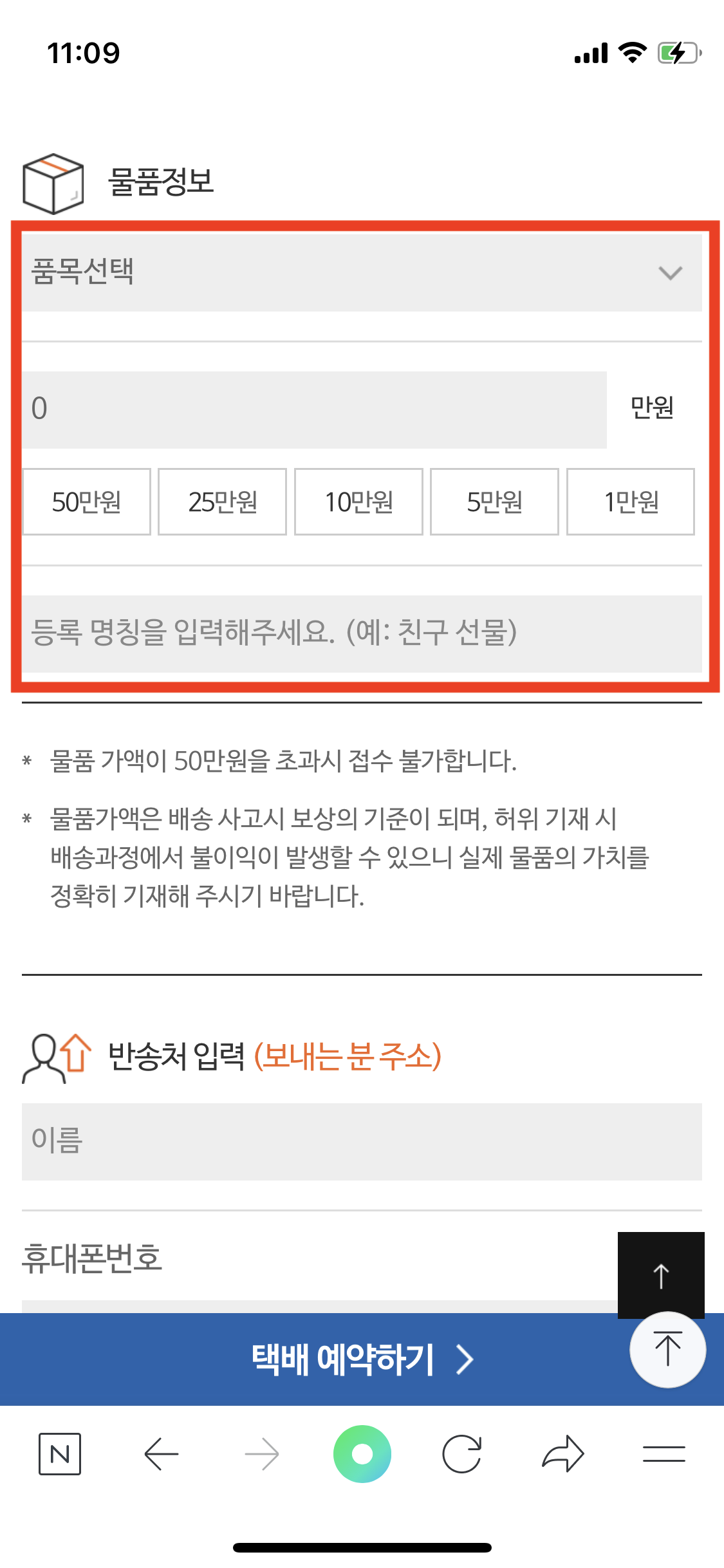 보통 나가는 길에 택배를 접수하는데 현장에서 여러 정보를 쓰려면