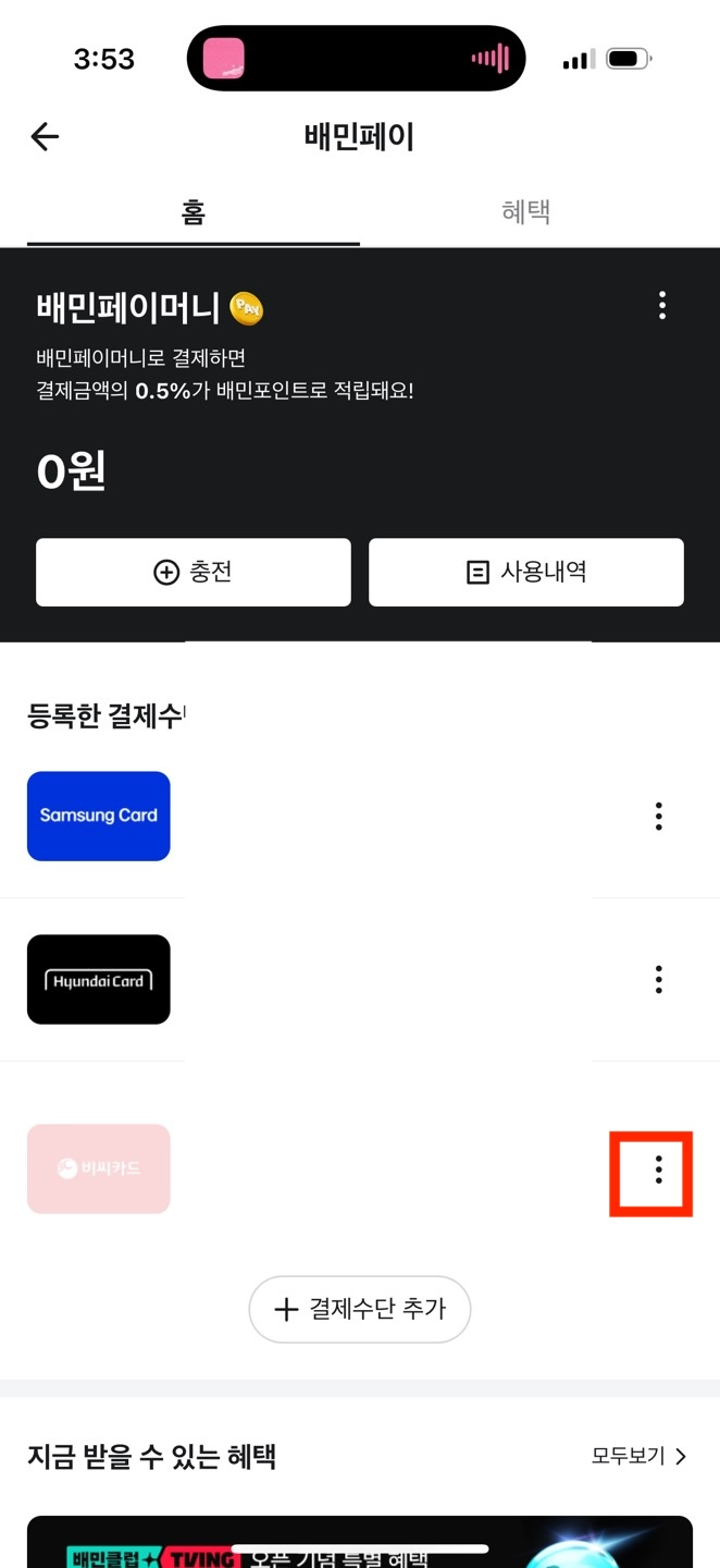 - 배민에서 자동결제 카드 변경 또는 삭제가 필요한 분