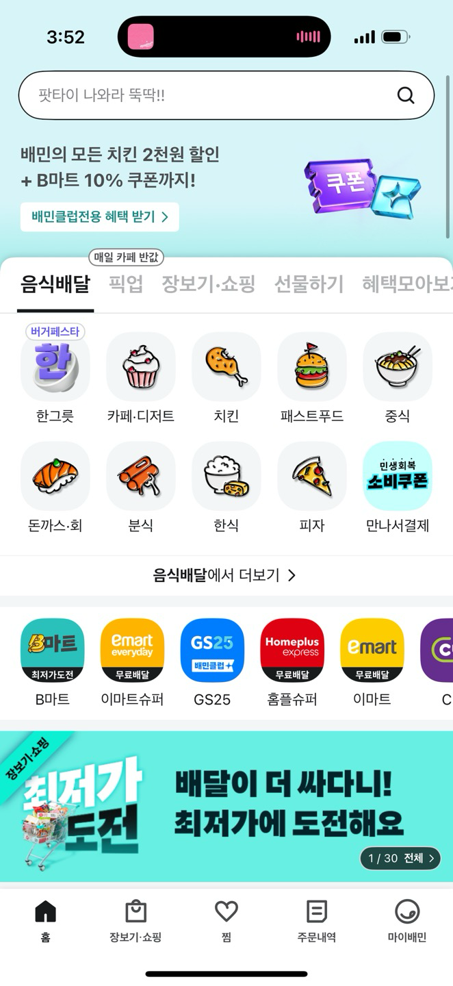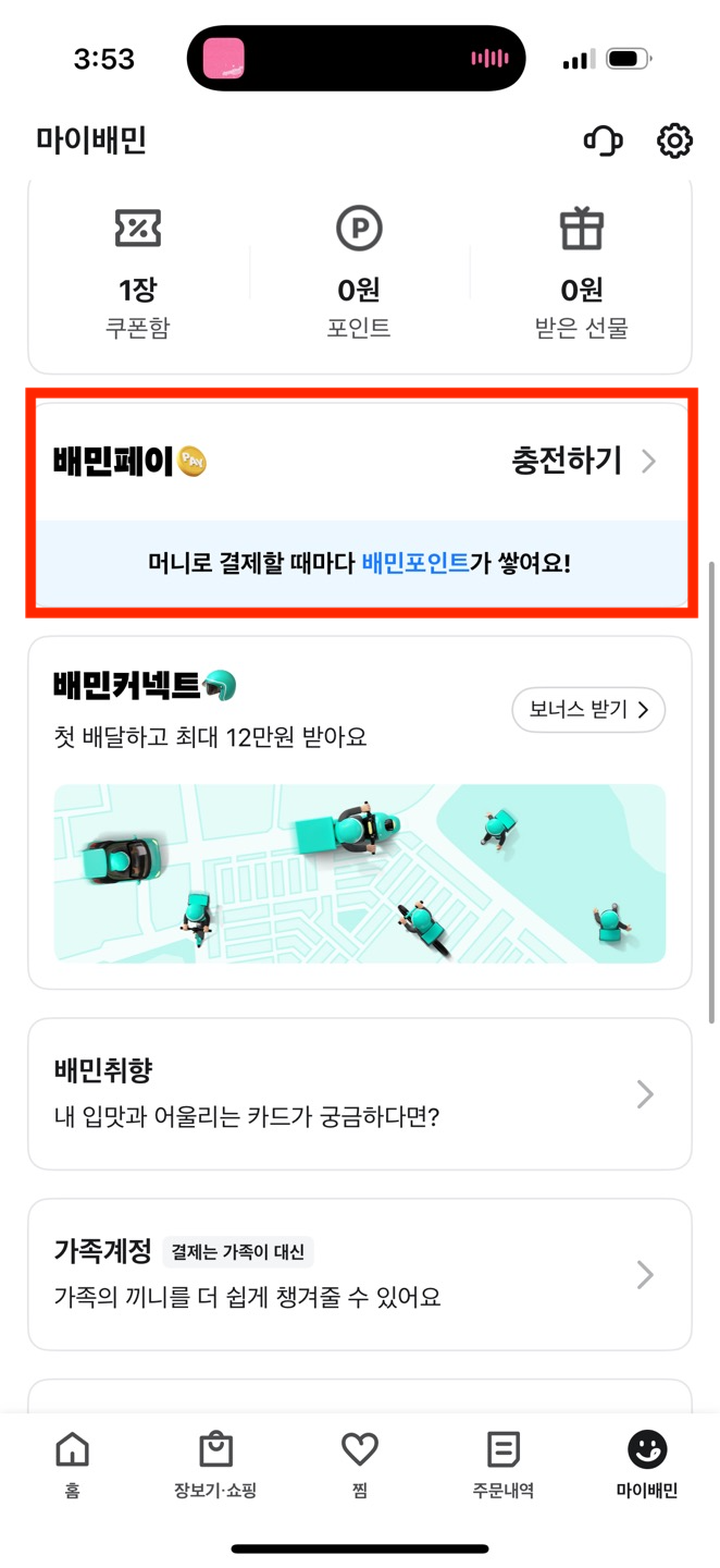 - 배달의민족 앱 실행 → 하단 [MY배민] 클릭