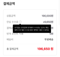 아래 사진을 보시면 구매금액의 3.5%가 수수료로 책정되어 있습니다.