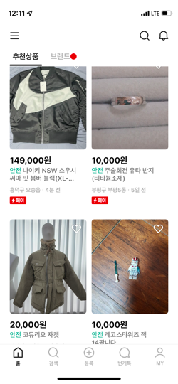 일단 안전거래는 아래 첫 번째 사진처럼 제품 밑에 빨간색으로 [페이]라고 쓰인 제품들만 번개장터 안전거래가 가능해요.