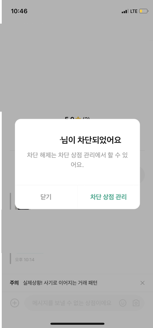 이후, 다시 [차단하기]를 눌러주시면 해당 유저가 차단되면서 저한테 연락을 할 수가 없게 됩니다.