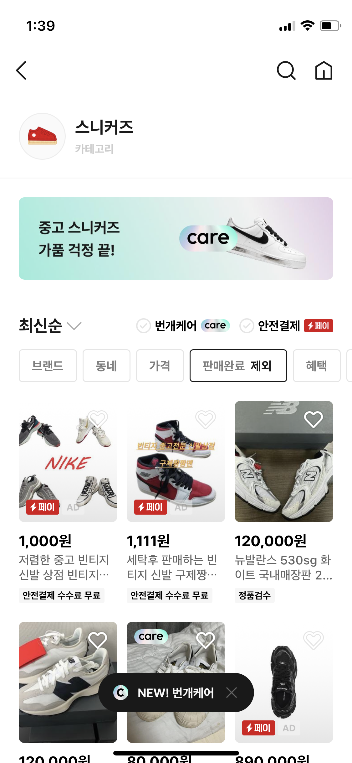 번개장터 카테고리별로 물건 찾는 방법 끝!