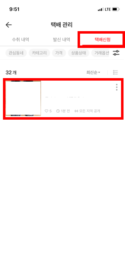 그러면 팔고 있는 물품리스트가 나오는데 택배를 보낼 물품을 눌러주세요.