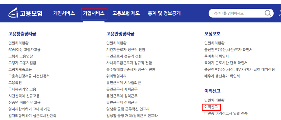 [기업서비스] - [이직신고] 클릭