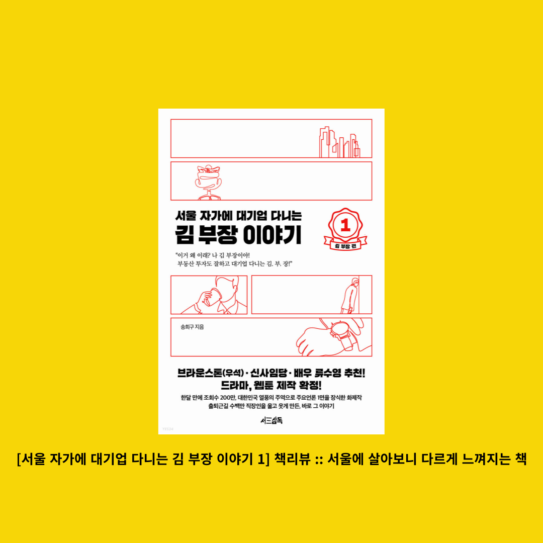 <서울 자가에 대기업 다니는 김 부장 이야기 1 김 부장편>이 많은 사람들의 공감을 불러일으킨 것도 우리 삶과 밀접하게 연관되어 있기 때문이다. 서울은 집이 있는 자와 없는 자로 나뉜다. 집이 있는 사람은 다른 재테크를 통해 자산을 불리지만 집이 없는 사람은 나만의 보금자리를 얻기 까진 계속 모아야 한다. 여기서부터 빈부격차가 발생한다. 그리고 집이 있는 사람들도 상대적인 빈부격차가 발생한다. 누구는 10억이 올랐다, 누구는 5억이 올랐다처럼 말이다. 책에 나오는 김 부장은 자가가 있다. 하지만 상대적인 빈부격차를 느낀다. 집이 있든 없든 결국 서울에 살면 항상 집, 집, 집 이다.
