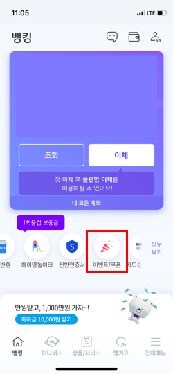 먼저 신한 쏠을 다운로드 해주시고 [이벤트] - 컵반환 이벤트를 클릭해주세요.
