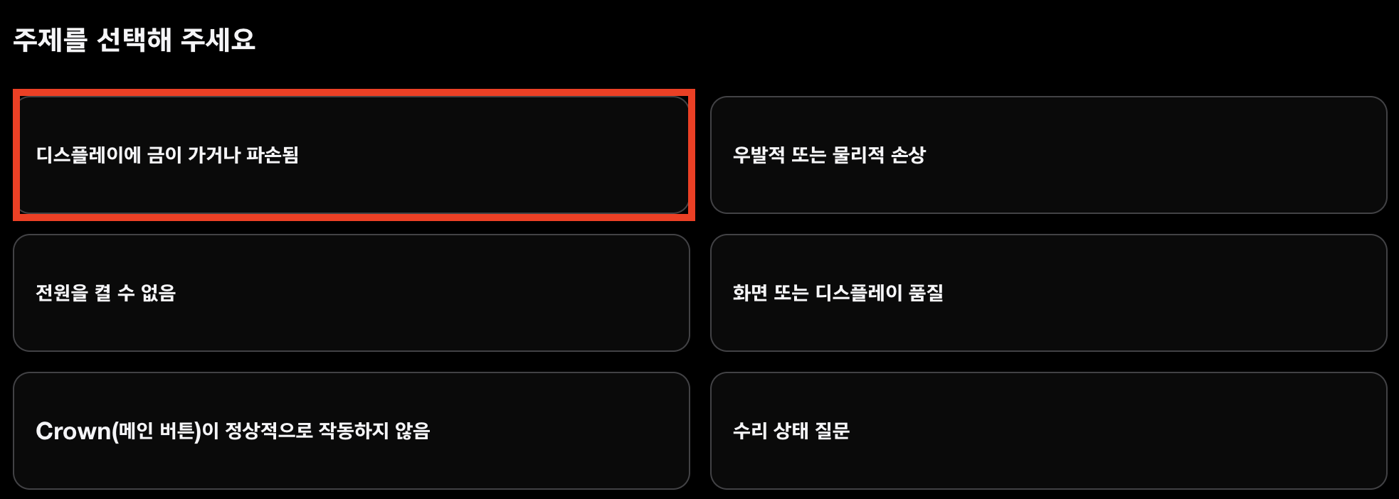 그런 다음 [수리 및 물리적 손상] - [디스플레이에 금이 가거나 파손됨]을 눌러주신 후,