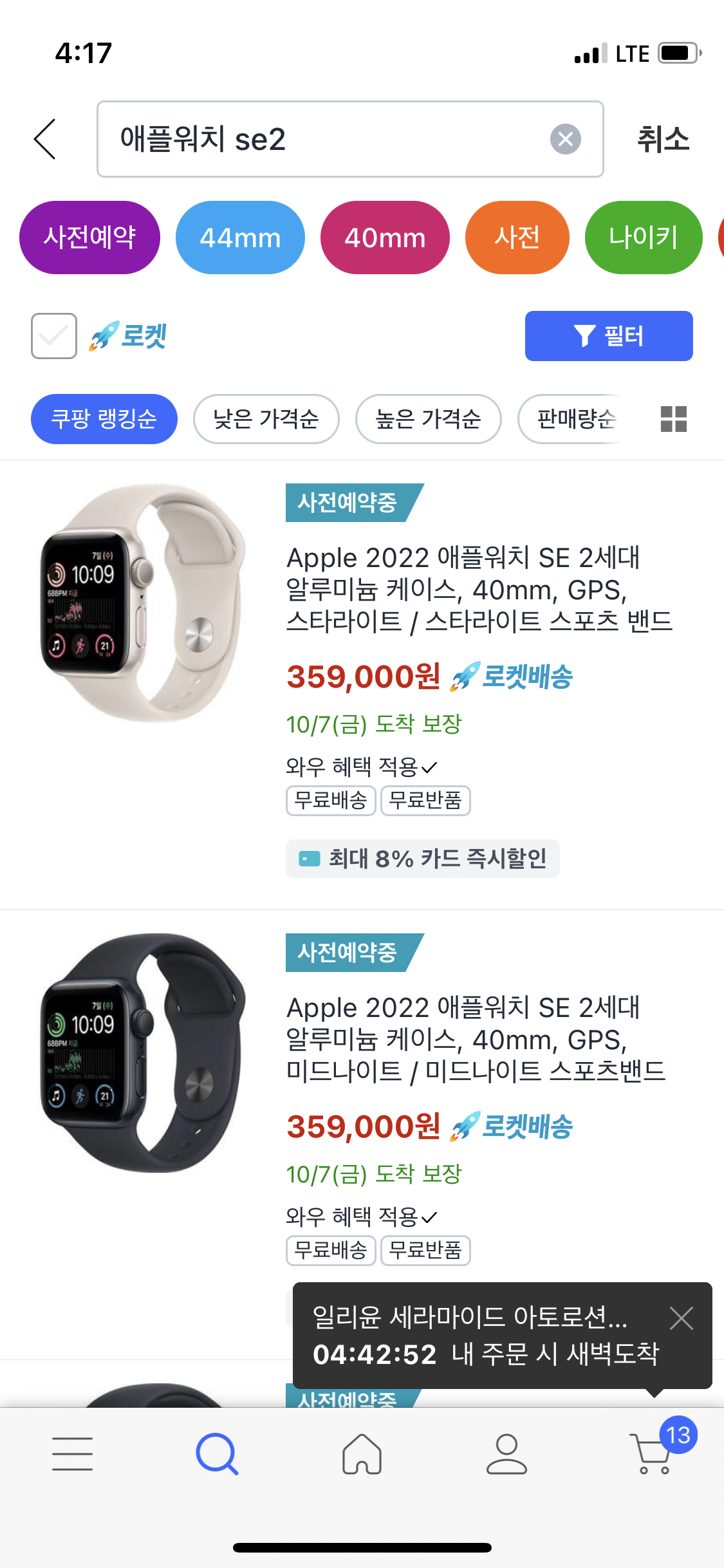 그리고 검색창에 애플워치 SE2라고 검색을 해주세요.