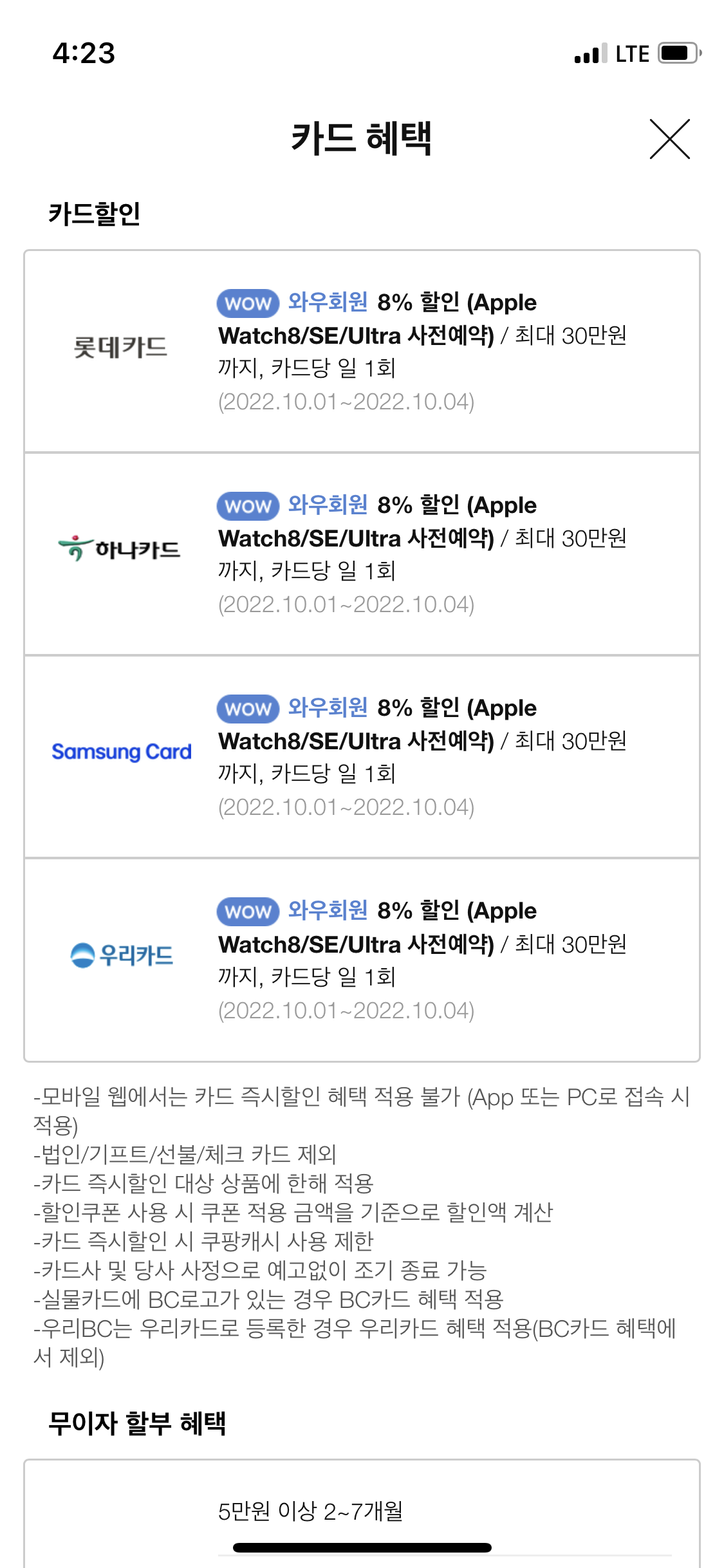 아래 카드로 구입을 하시면 최대 8%까지 할인을 받을 수 있어요.
