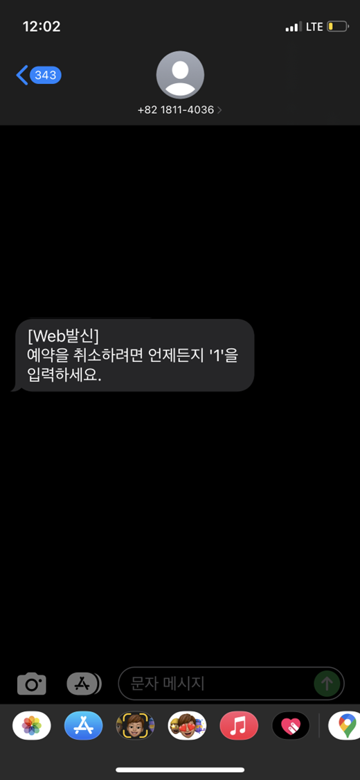 예약 알림 문자 메시지에 자신의 휴대폰 번호를 입력하시면