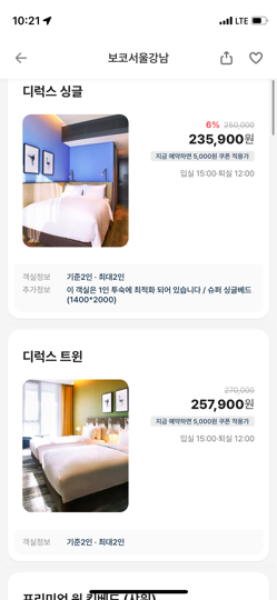이후, 아래로 내리면서 원하시는 숙소를 클릭해주세요.