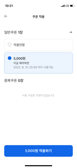 먼저 쿠폰이 있으시다면 [적용하기]를 눌러주신 후,