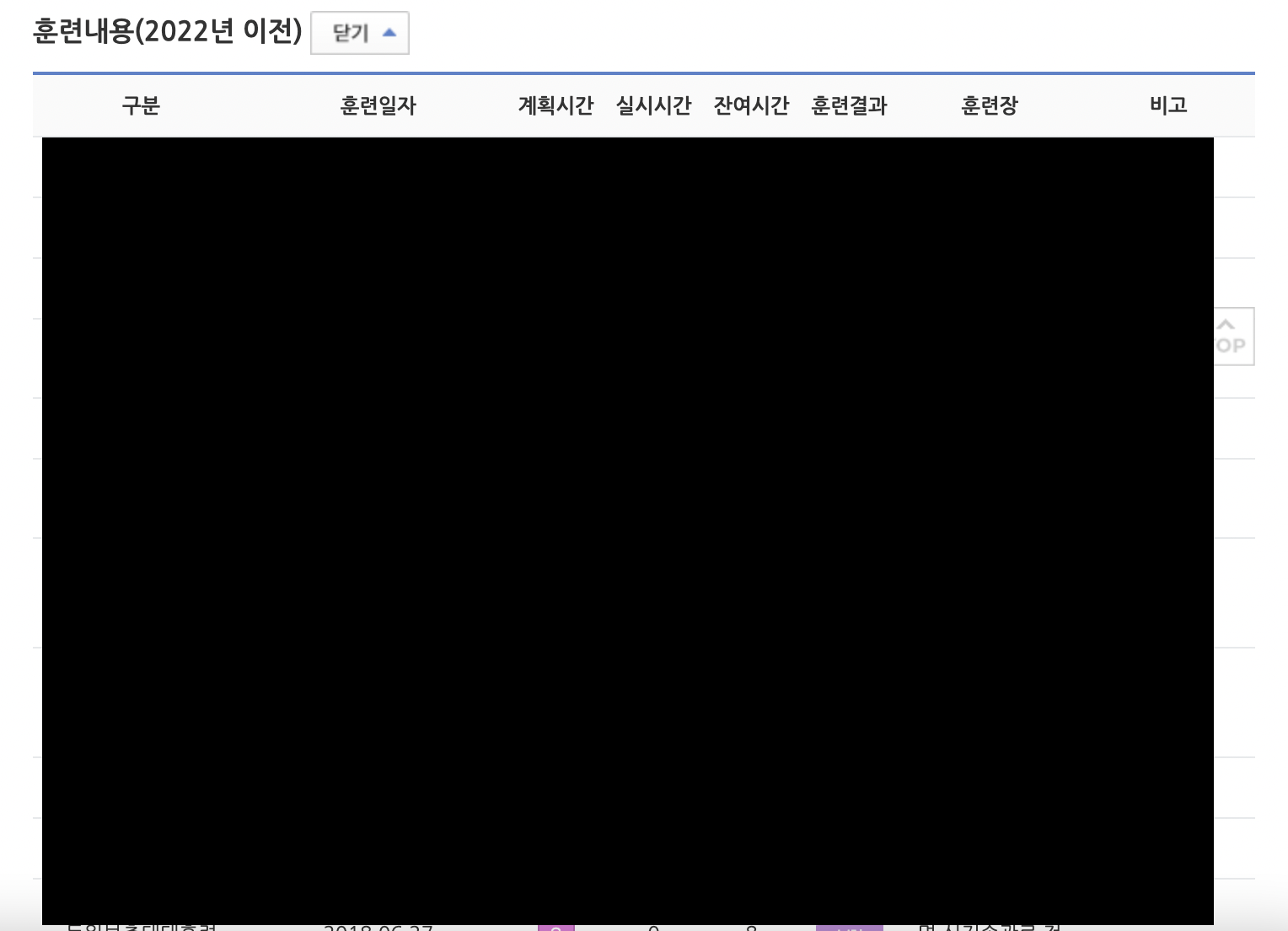 밑에 있는 [열기]를 눌러주시면 지금까지 받았던 훈련 내역을 살펴보실 수 있어요!