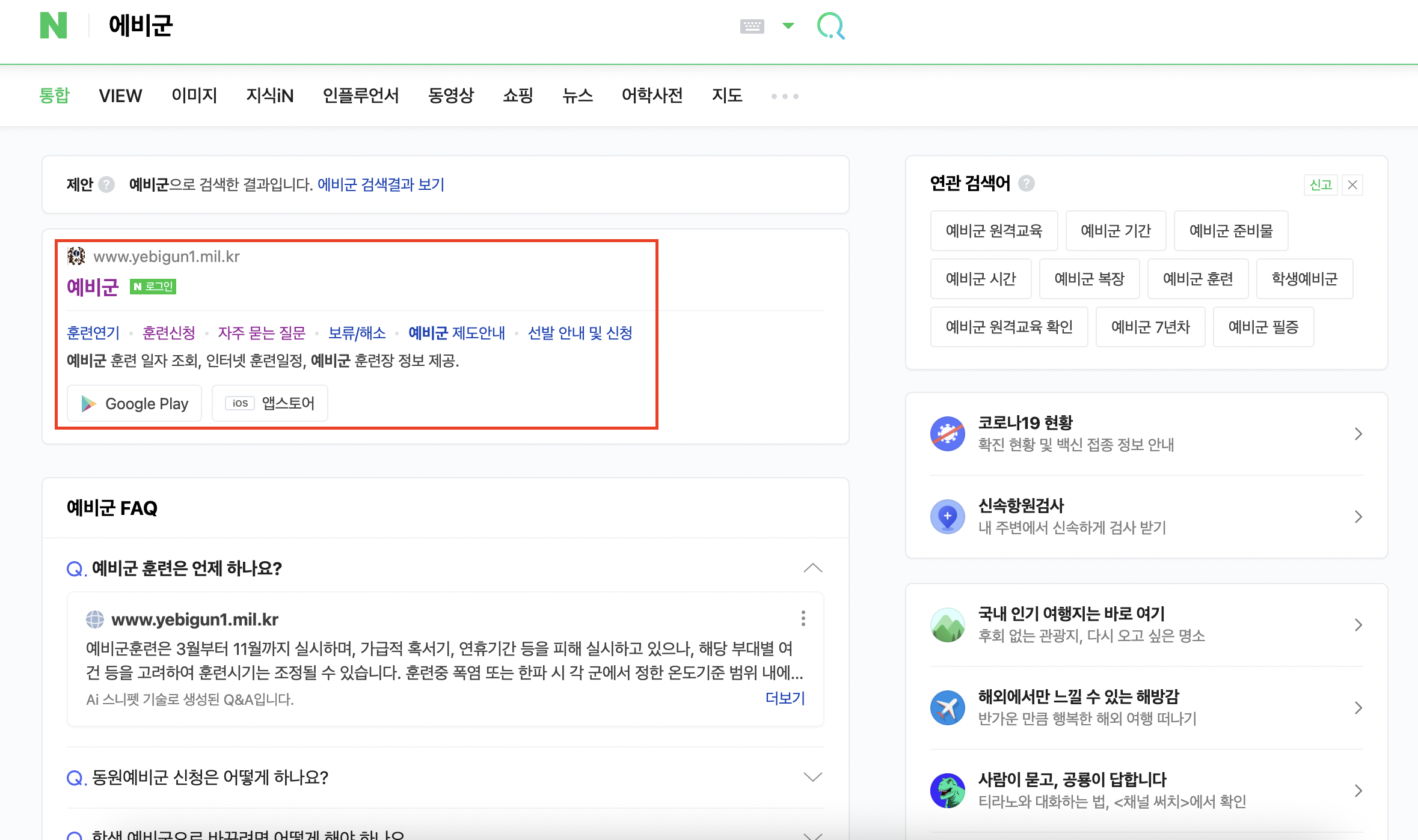 먼저 네이버에서 예비군으로 검색하신 후, 해당 홈페이지로 들어가 주세요.