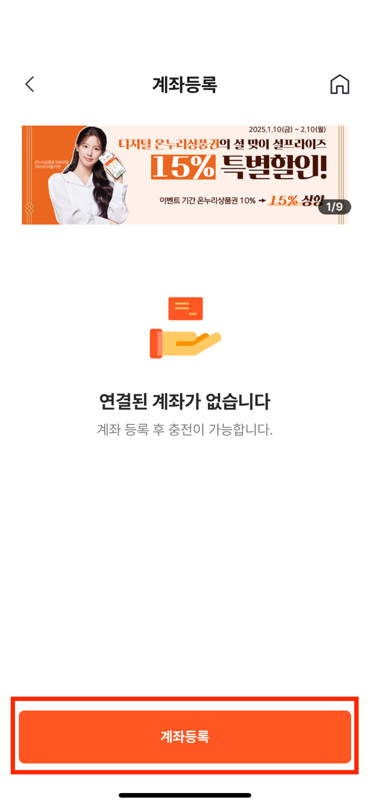 아래 첫 번째 화면처럼 계좌등록 버튼 클릭 후 - 계좌 등록을 해주신 후,